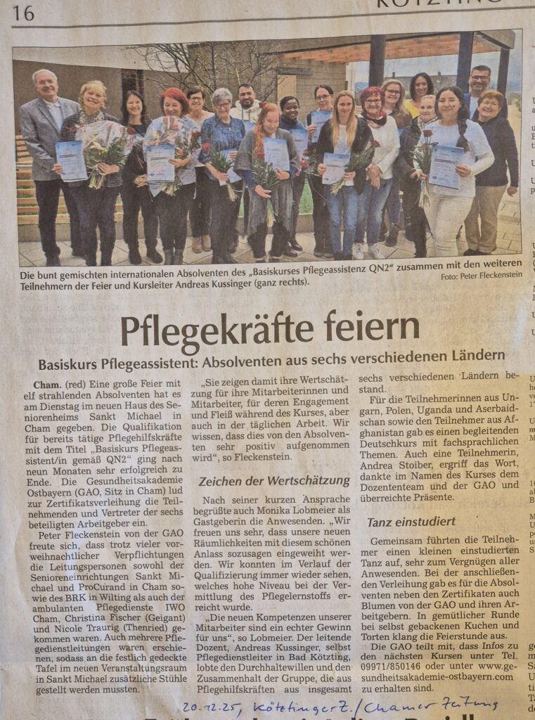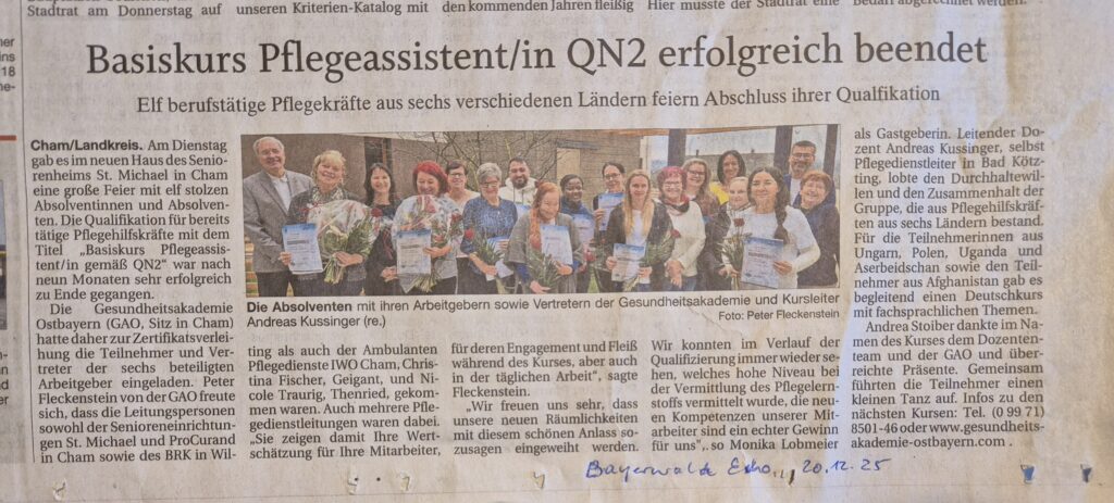 Pressebericht Chamer / Kötztinger Zeitung, sowie Bayerwald Echo, 20.12.2025: